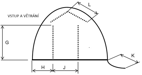 • L – okýnko nad dveřmi, další stejné okénko je standardně i na protilehlé straně plachty. Šíře okýnka je stejná jako šíře dveří – standardně 40 cm na každou stranu.